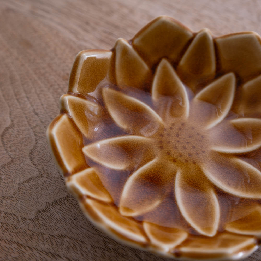 琥珀釉のダリア形浅鉢。