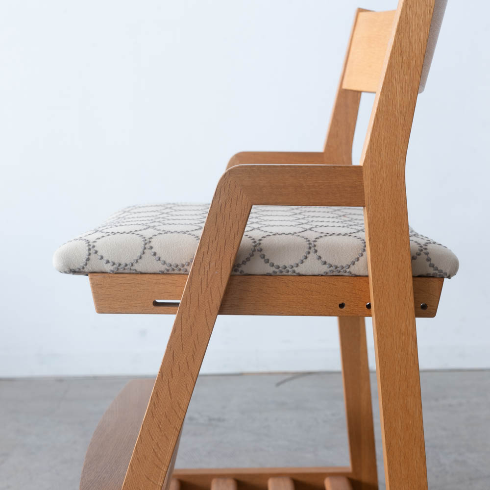 学ぶ時間も、作業する時間も。姿勢と集中を静かに支えるために考え抜かれた、日本製のオーク学習チェアです。天然木オーク材の確かなフレームに、tambourine dop の刺繍座面を組み合わせ、機能性と美しさを両立。子どもの成長期から大人のデスクワークまで、長く使い続けられる一脚です。