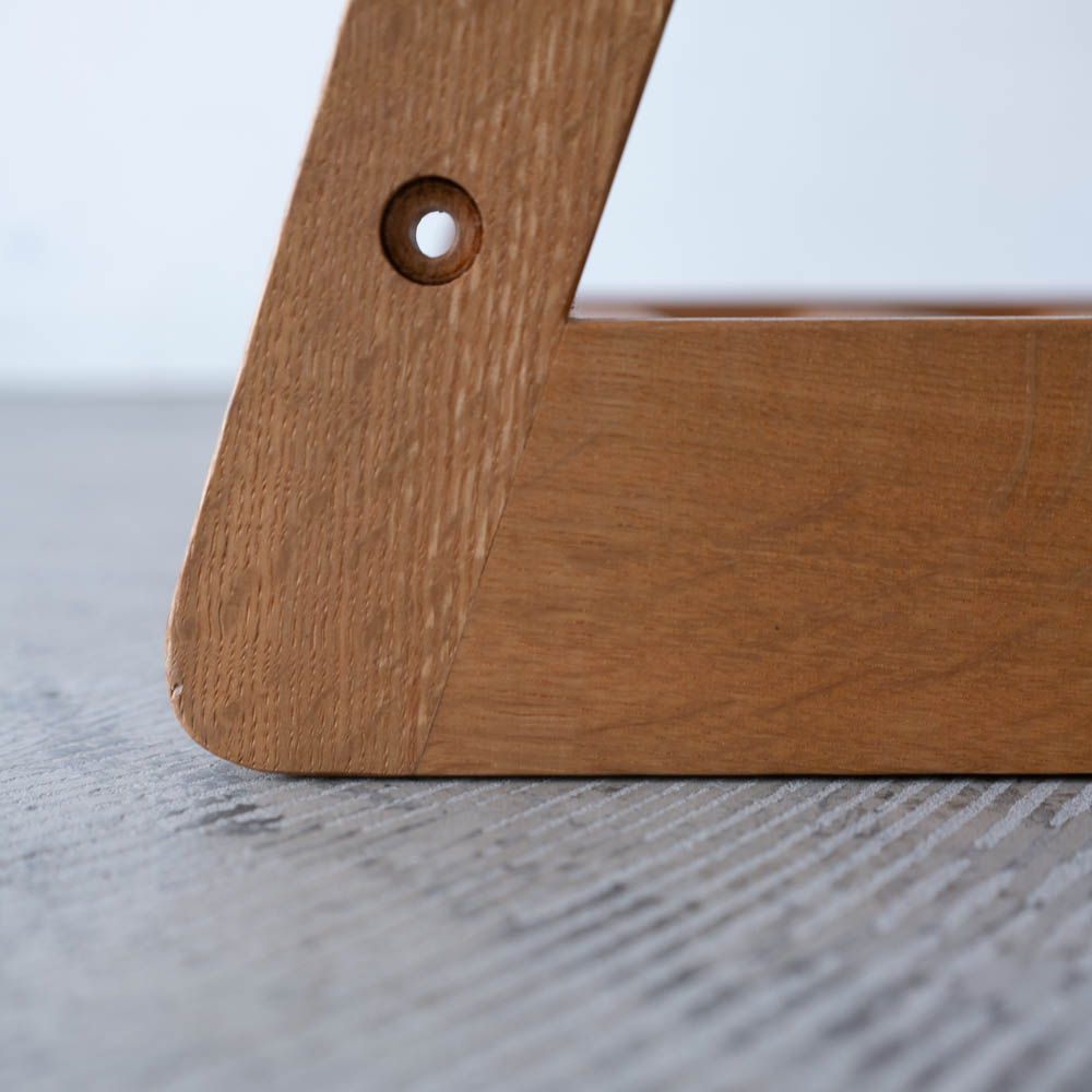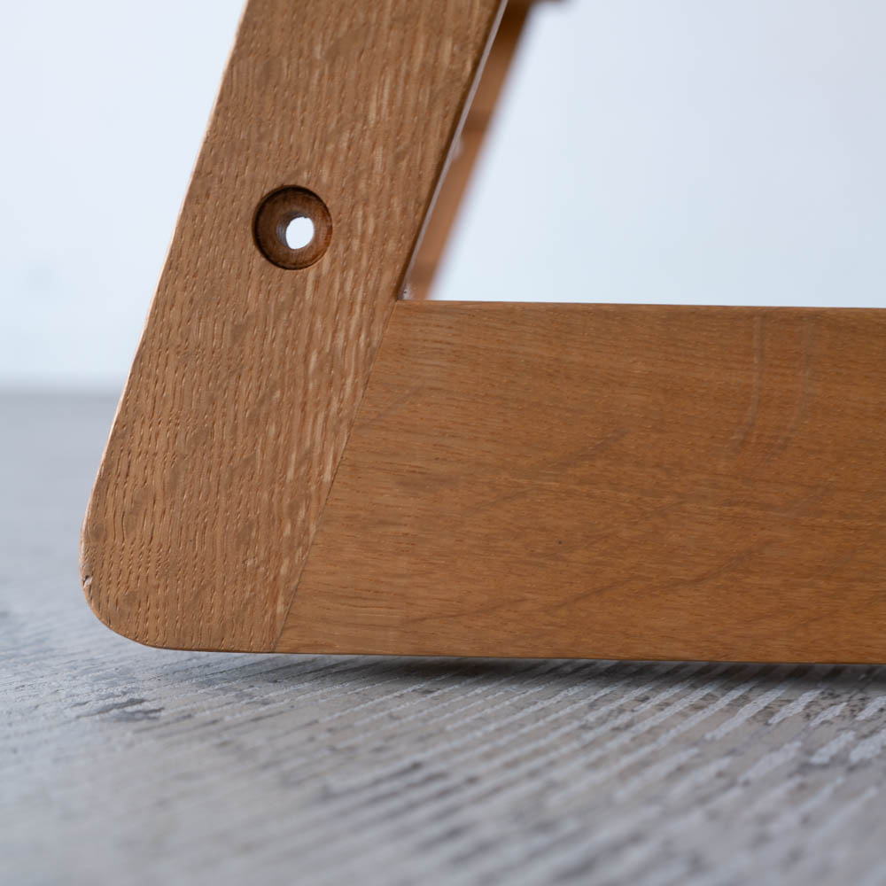 フレームには、強度と粘りに優れたオーク材を使用。しっかりとした重量感がありながら、木目は穏やかで、空間に自然と馴染みます。使い込むほどに色味が深まり、時間とともに育つ素材です。