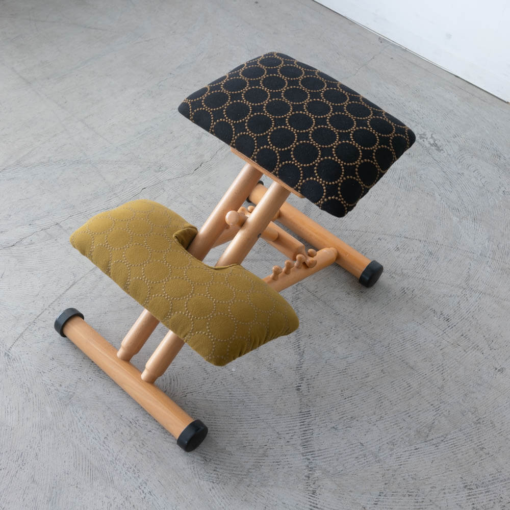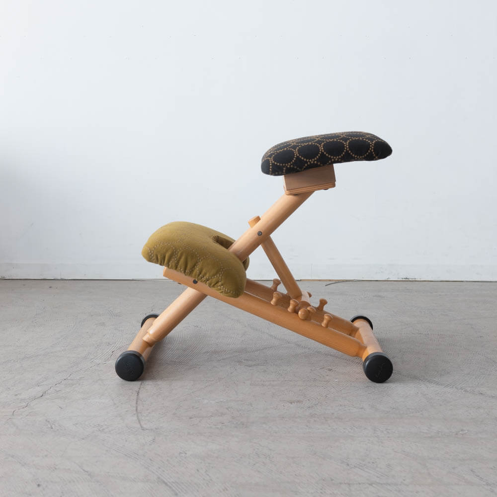 膝と腰、両方を預ける設計。VARIABLEの特徴的な構造は、前方の膝当てと、後方の座面。体重を分散させることで、腰だけに負担が集中せず、自然な前傾姿勢を保ちやすくなります。高さ調整が可能なため、身長や用途に合わせて細やかにフィットします。