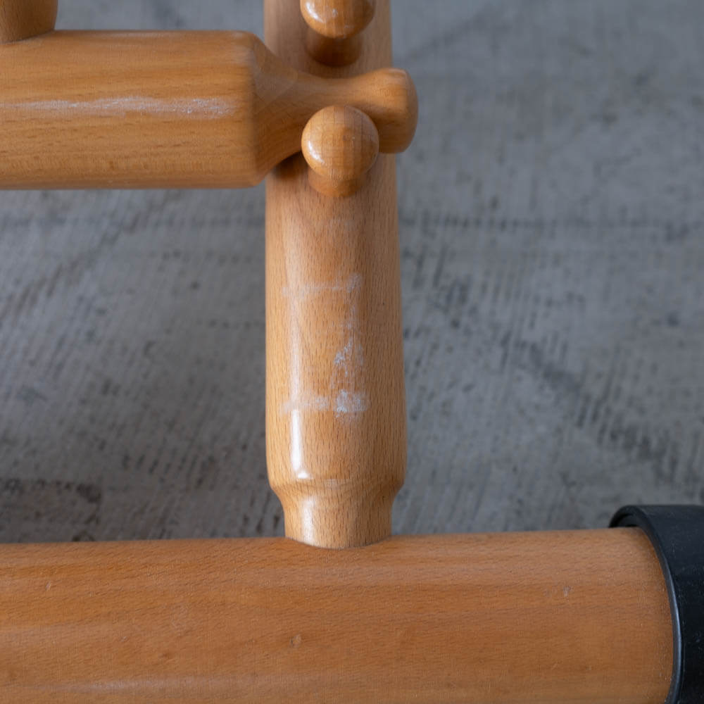 A. 構造を確認し、生地を新たに張り替えた上で、丁寧に仕上げています。機能面については、VARIABLE本来の性能をしっかりと保っており、日常使いに問題はありません。なお、木部にはこれまで使われてきた時間の中で生じた小さな傷が見られますが、それも含めて、このチェアが歩んできた背景としてお楽しみいただければと思います。