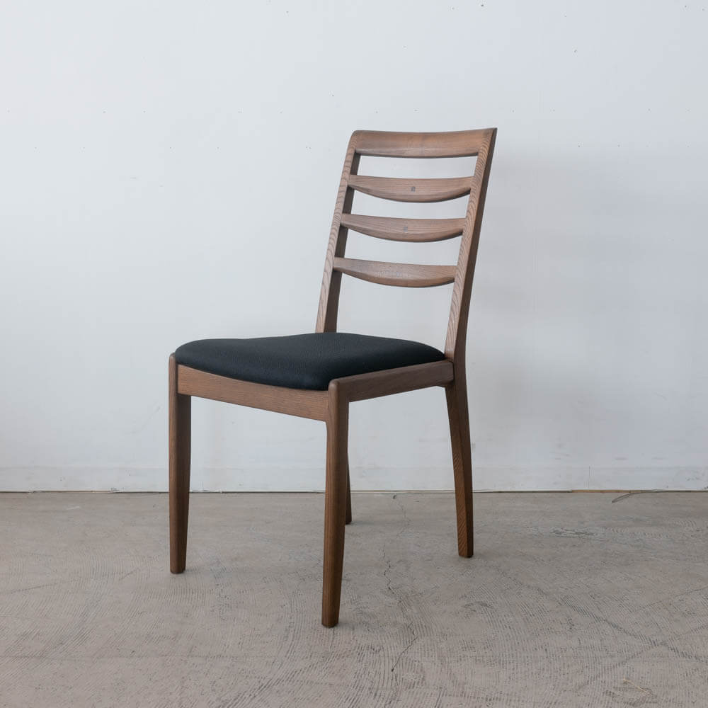 チェアは軽量設計で、掃除や移動もストレスを感じにくいつくり。座面にはゴムベルトとウレタンフォームを使用し、しっかりと体を支えながらも硬すぎない座り心地です。背板にはさりげない象嵌が施され、量産品の中にもBOSCOらしい技術と遊び心が感じられます。