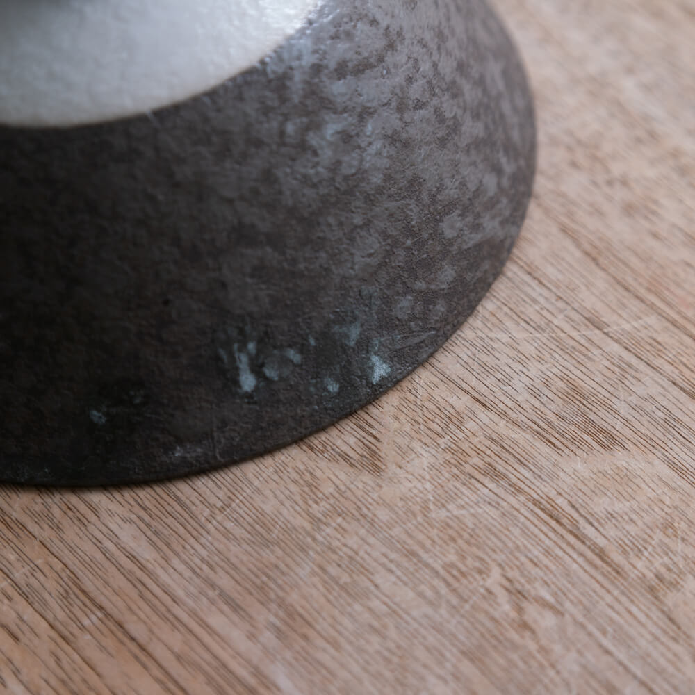 製造工程や焼成によって生じた、釉薬のムラ・色差・黒点・細かなキズが見られます。いずれも使用に問題はなく、焼き物の特性によるものです。こちらの商品は、釉薬のムラ・色の濃淡差・釉薬溜まり・黒点(鉄粉)・細かなキズや擦れなどが見られるため、アウトレット品として販売しています。あらかじめご理解いただいたうえでお選びください。