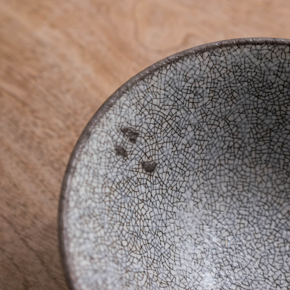 器の表面に広がる模様は、かいらぎ特有のひびの景色をモチーフにしたもの。自然に生まれる力強いかいらぎとは異なり、下絵として描かれた線に釉薬のにじみが重なり合うことで、穏やかで奥行きのある表情に仕上げられています。料理を主役にしながら、そっと背景として支えてくれる表情です。