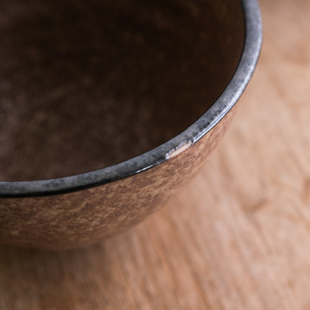 製造工程や焼成によって生じた、釉薬のムラ・色差・黒点・細かなキズが見られます。いずれも使用に問題はなく、焼き物の特性によるものです。こちらの商品は、釉薬のムラ・色の濃淡差・釉薬溜まり・黒点(鉄粉)・細かなキズや擦れなどが見られるため、アウトレット品として販売しています。あらかじめご理解いただいたうえでお選びください。