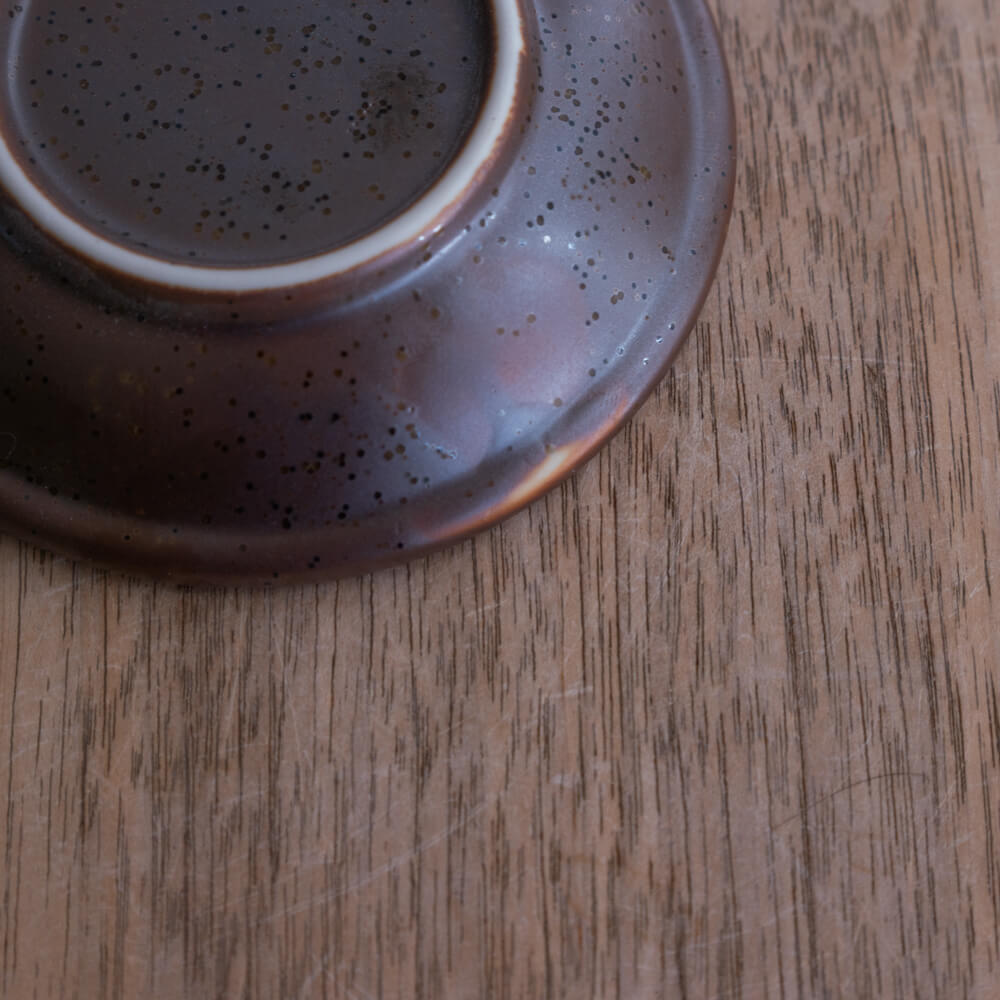 表面に見られる細かな点状の表情は、土や釉薬に含まれる成分が焼成時に反応して現れたものです。後から付いた汚れではなく、最初から器の一部として存在している景色になります。焼かれた証として、ひとつひとつ異なる表情をお楽しみください。