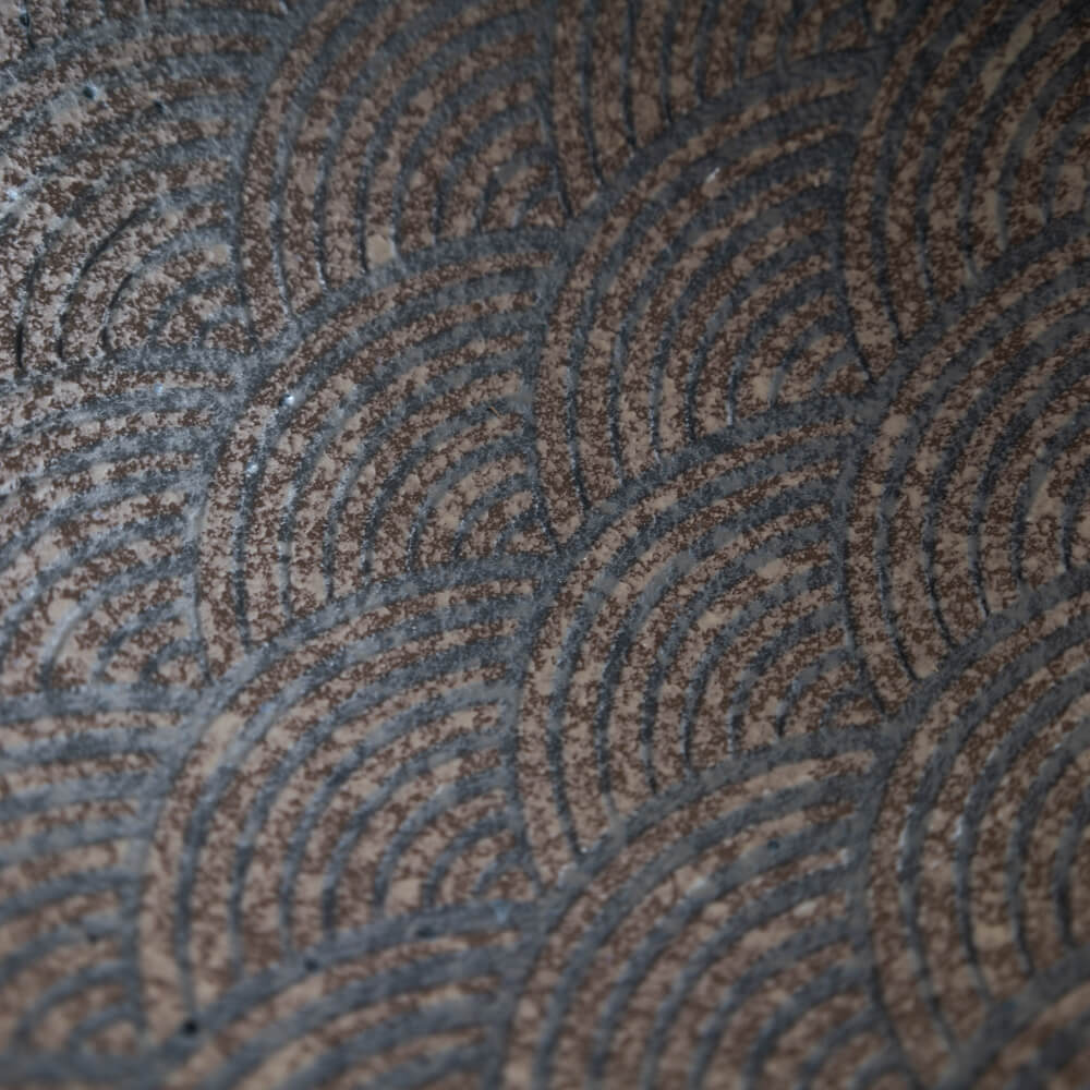 柄は立体ではなく、黒のトーン差で表現。平らな面の中に、やわらかな波紋が広がります。
