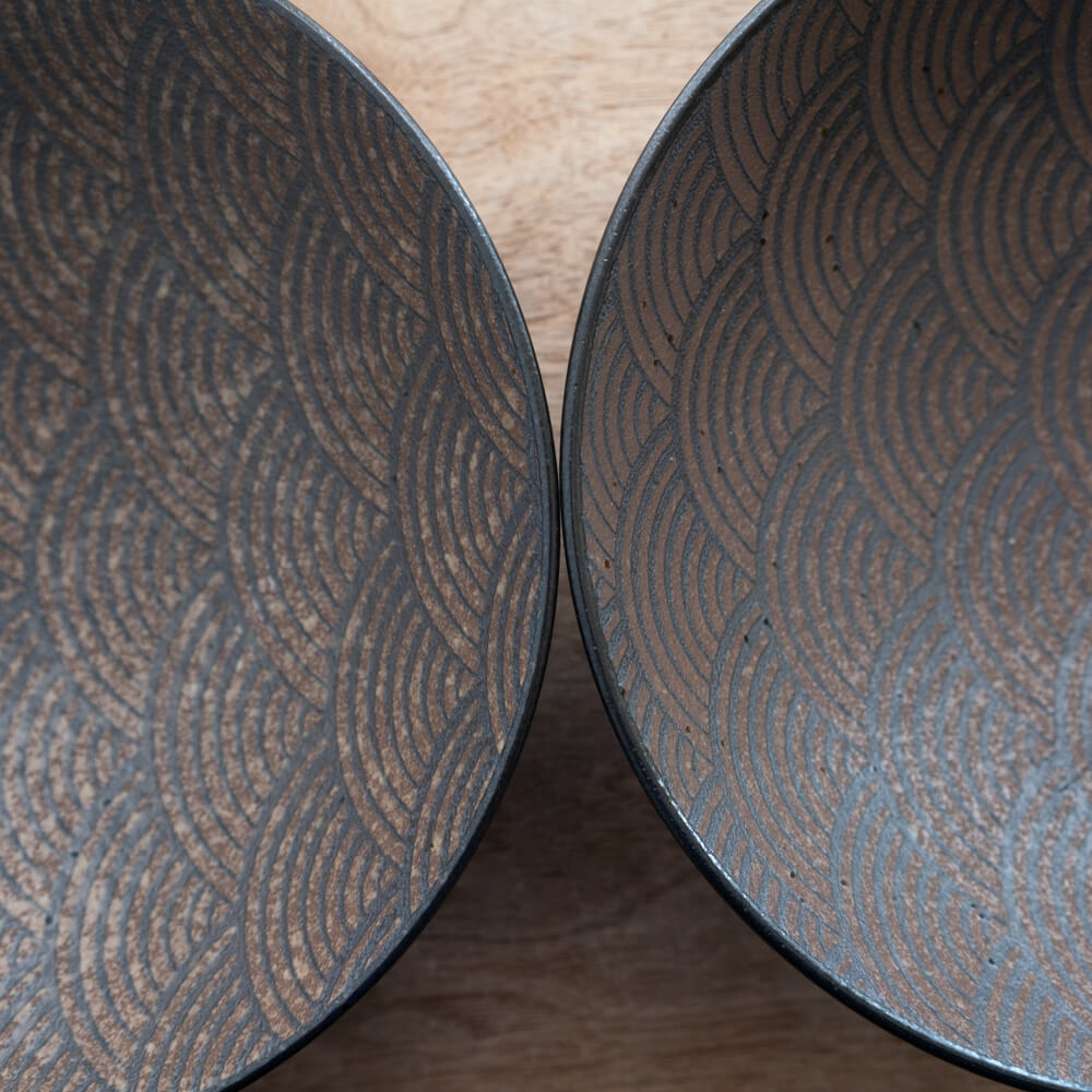 伝統的な波紋柄と黒釉の組み合わせ。和食だけでなく洋食にもなじみます。