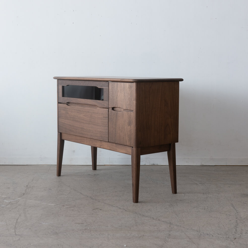 ウォールナットの深い木目に、ミストガラスの柔らかな透け感。テレビまわりの“生活感”を隠しながら、空間の印象はすっきり整えてくれるAVカウンターです。展示現品のため、出会いは一度きり。