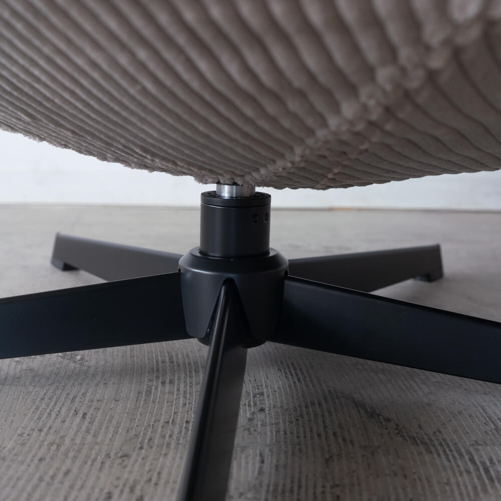 午後の光が差し込む場所に置くだけで、ひと息つくための席ができる。LOMAの回転チェアは、ふっくらした座面と背のクッション感で体を預けやすく、向きを変える動作まで心地よく整えてくれます。
