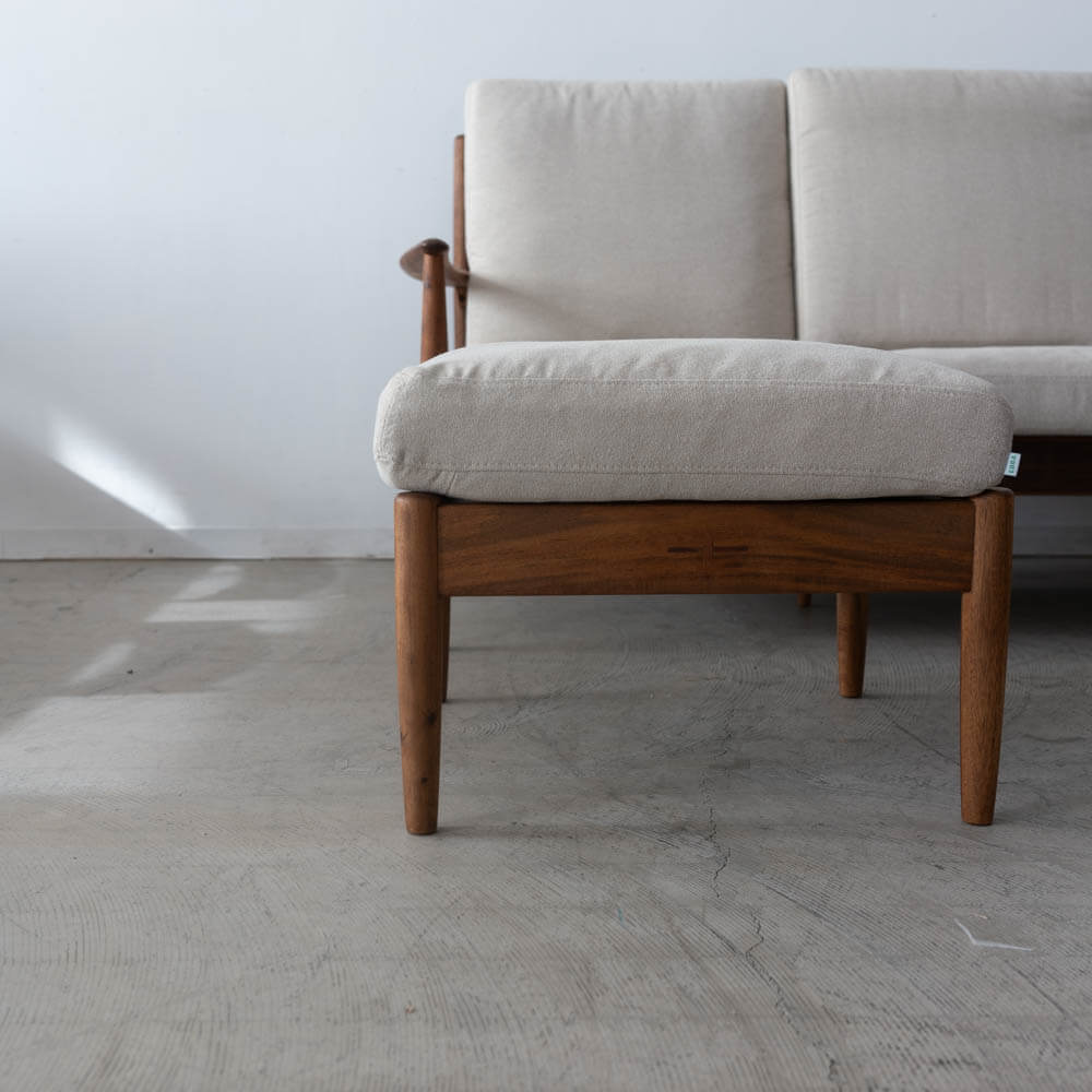 クッション材はウレタンフォーム。オットマンとして足を置いたときに沈み込みすぎず、姿勢が崩れにくい安定感があります。長く使うほどに、ちょうどよい馴染み方をしていくタイプです。