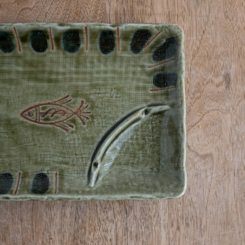 織部の緑に、魚の遊び心。