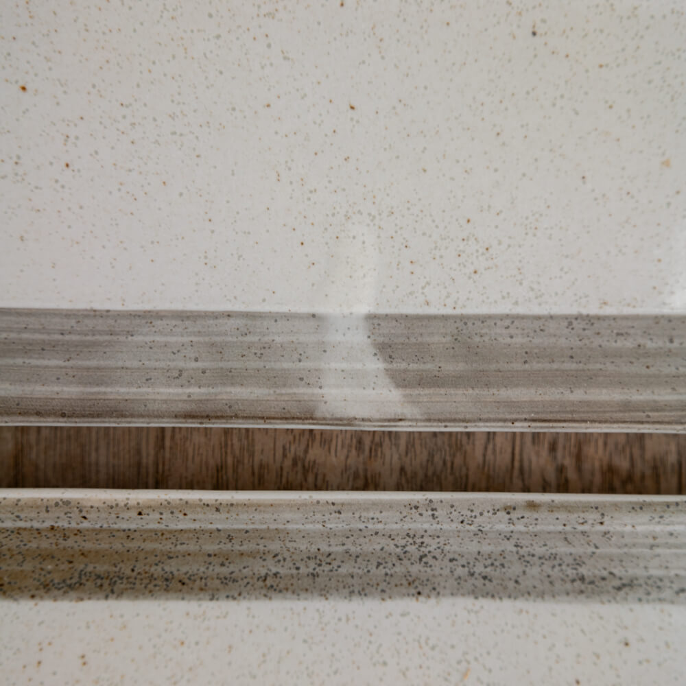 A. 汚れではなく、焼成時にあらわれる鉄粉です。土や釉薬の成分によって出るもので、焼き物の表情のひとつとして見られるものです。