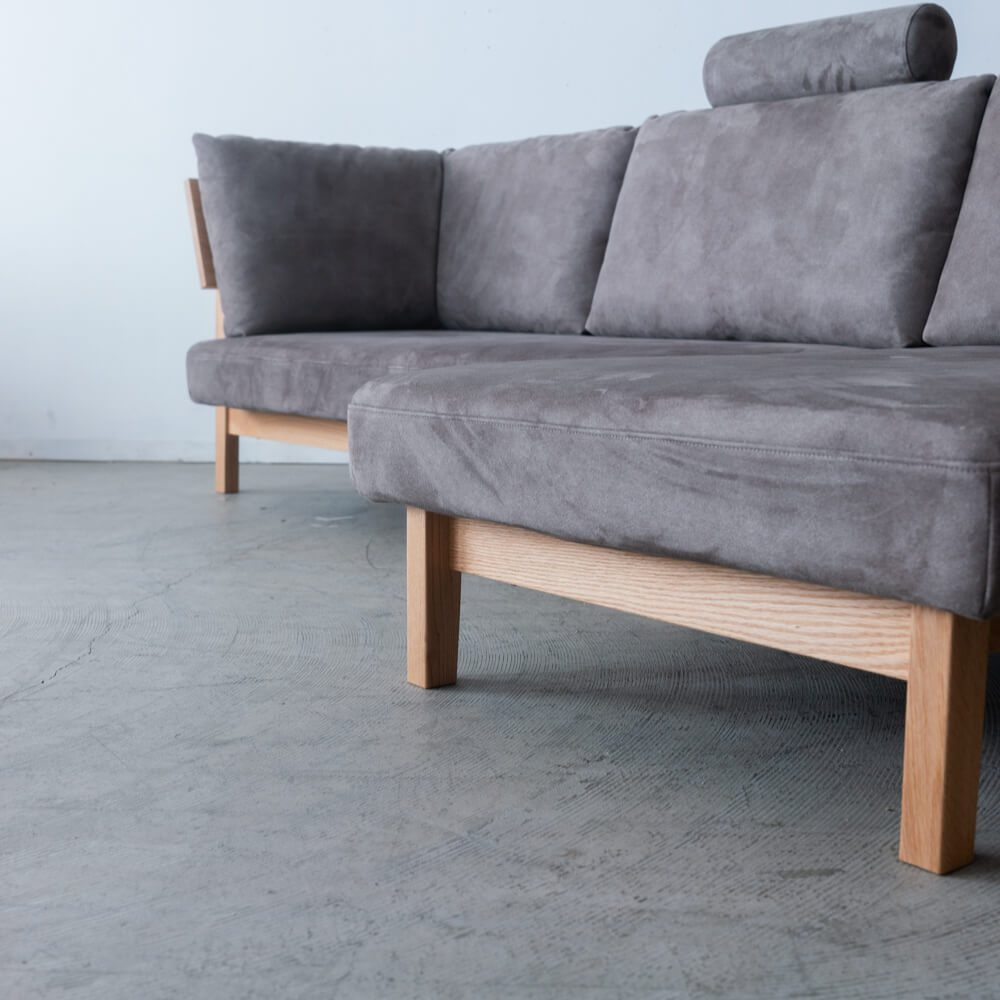 軽やかな無垢材カウチソファ
