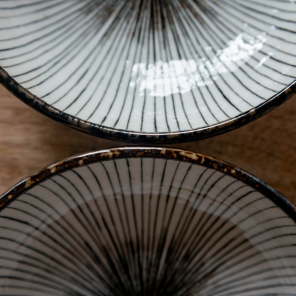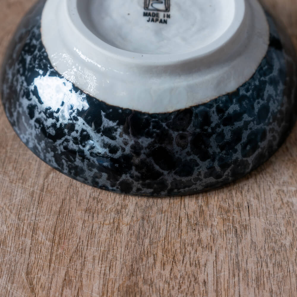 外側は一色の黒ではなく、黒をベースに茶や金属のような鈍い艶が重なる、深みのある仕上がり。見る角度や光によって表情が変わり、内側の白黒のコントラストをより印象的に引き立ててくれます。棚に重ねたときも単調にならず、器好きの方にはたまらない魅力があります。