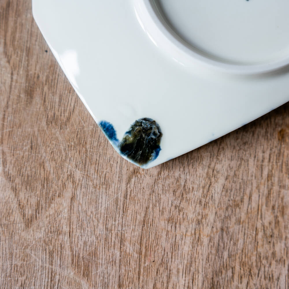 A. 一枚ごとに、青い線の濃さやにじみ方、黒点の位置、釉薬の表情が少しずつ異なります。掲載写真は雰囲気の参考としてご覧いただき、個体差もこの器の持ち味として楽しんでいただけますと幸いです。