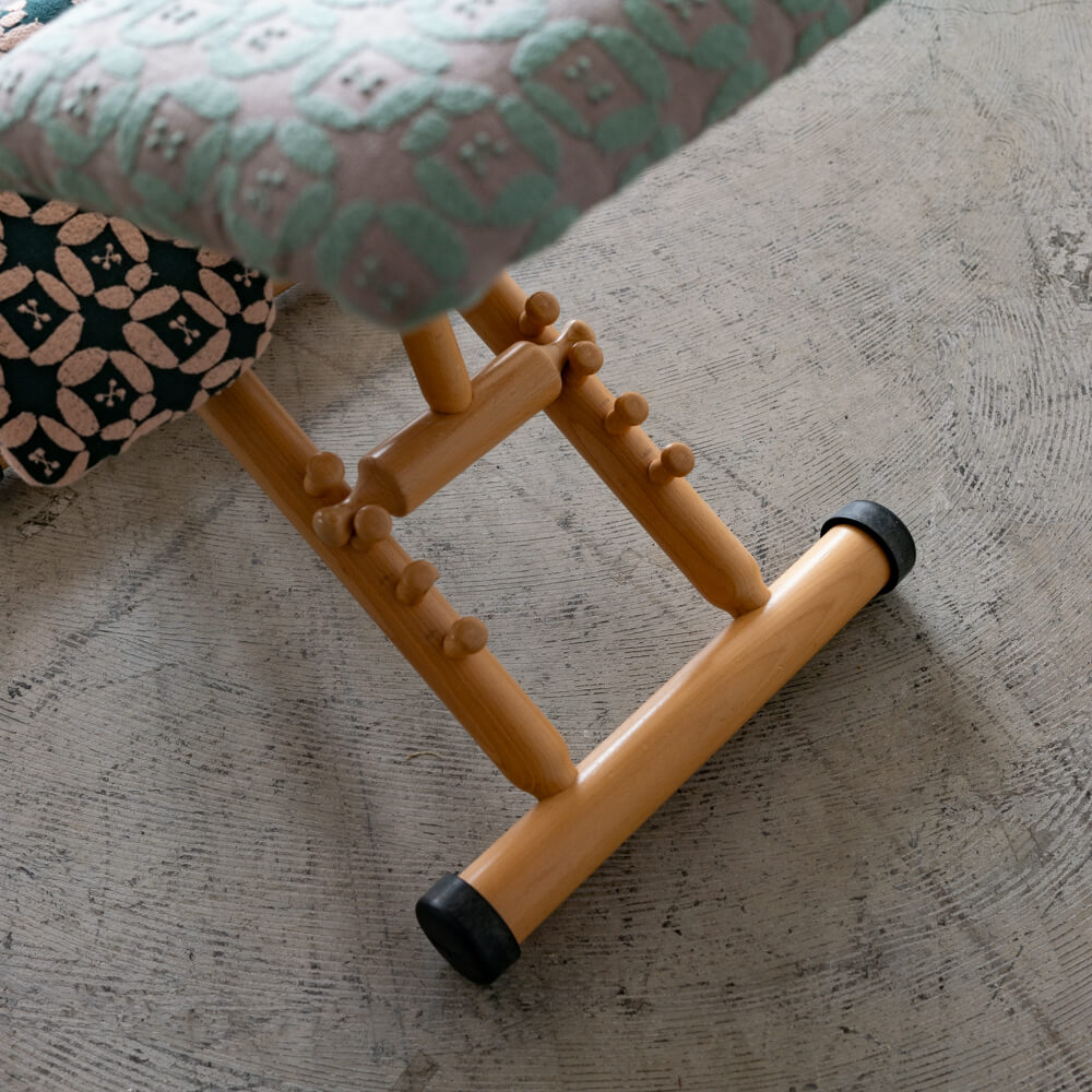 張地には、ミナペルホネンの“dear”を使用し、新たに張り替えを行っています。有機的でやさしいパターンが、VARIABLEの機能的なフォルムにやわらかな表情を添え、単なるリユース家具ではなく、インテリアとして選びたくなる存在感に仕上がっています。