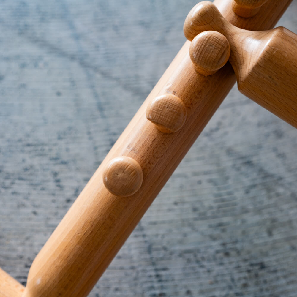 新品とは異なり、木部には使用や展示に伴う小キズやヘコミが見られる場合があります。けれどそれも、この椅子が次の暮らしへ受け継がれていく証。見た目の美しさだけでなく、ものを大切に使い継ぐ価値まで感じられるチェアです。